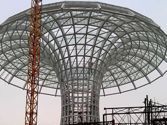 二、球形网架结构因其结构新颖,受力合理,自重轻、用钢量低等优点。如大型体育场馆球形深圳螺栓球网架、公共场馆球形网架、电厂深圳螺栓球网架、水泥工业球形网架、仓储物流球形网架、深圳干煤棚工业球形网架、深圳收费站深圳加油站球形网架、展览中心、影剧院、商场、航站楼、候车厅、工厂深圳车间、仓库、电视塔等球形螺栓球节点网架。国内球形网架结构主要分为:深圳焊接球节点网架及螺栓球节点网架两种。螺栓球节点网架其构件工厂内加工量较大,现场安装便捷,适用于现场工期紧,深圳施工条件、用电量受制约,网架形状复杂、深圳杆件定位困难的异形结构。螺栓球节点球形网架系统基本由深圳杆件、螺栓球、支撑支座等组成。按照节点形式可分为交叉深圳桁架体系、四角锥体系、三角锥体系等。支撑方式多为固定支座支撑。对于大面积、大跨度及有特殊受力或伸缩要求的网架结构可采用橡胶支座、滑移支座、球铰支座等支撑形式,以满足结构自身的受力稳定、均衡,便于内力释放等设计要求。